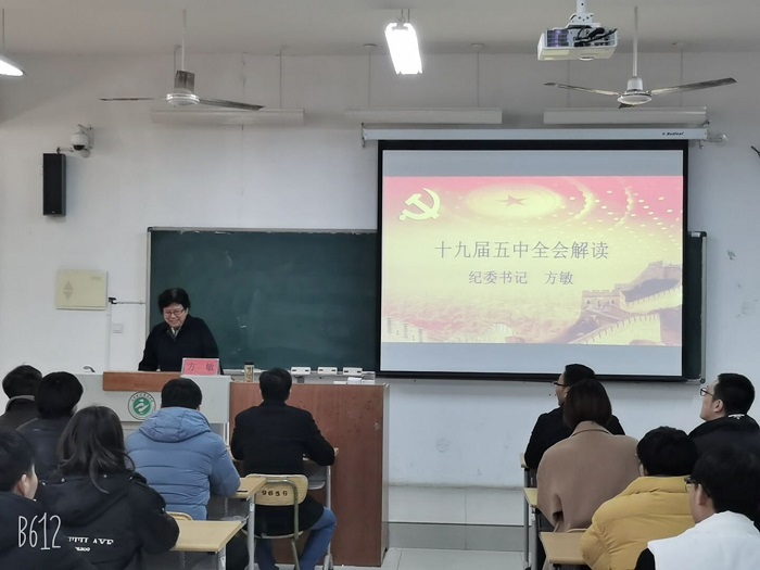 11月30日下午,纪委书记方敏为土木工程学院宣讲了十九届五中全会精神,学院党总支书记葛洪伟同志主持,学院党员教师和优秀学生代表参加。 方敏书记从党的十九届五中全会的基本内容、会议精神进行了全面解读,传达了校...