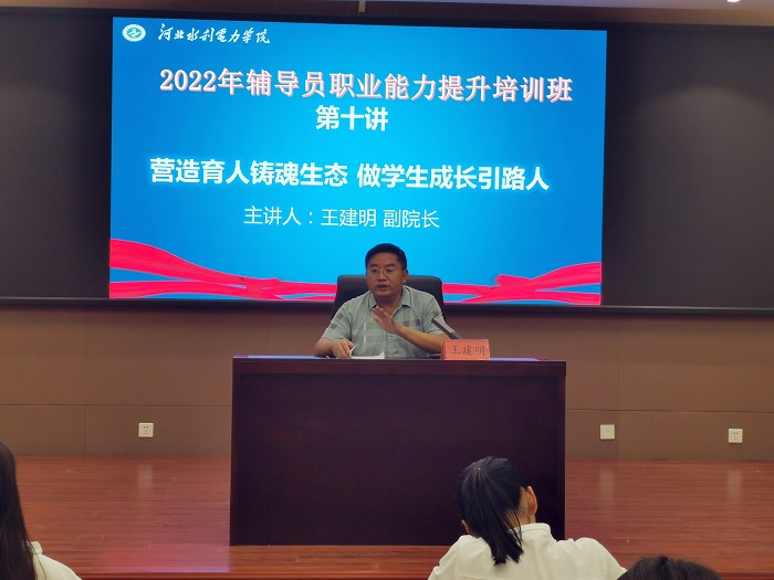 9月14日下午,我院本年度辅导员培训班在学院学术报告厅举办专题讲座,副院长王建明为全体学员作题为《营造铸魂育人生态 做学生成长成才的引路人》的讲座,讲座由学生工作部部长郑宝民主持。 讲座中王建明副院长从教育...