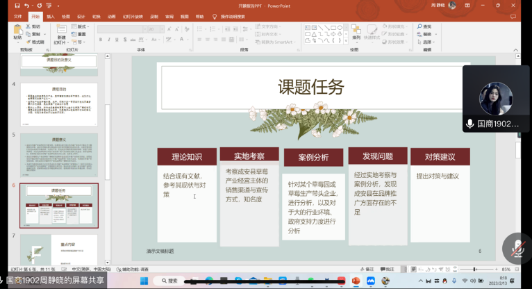 为强化学生培养过程化管理,提升毕业论文整体质量,经济贸易系于2023年2月13日召开了毕业论文开题报告汇报会,汇报以线上会议的形式进行,由国际商务和财务管理专业2019级学生进行开题报告汇报,全体指导老师组成评审...