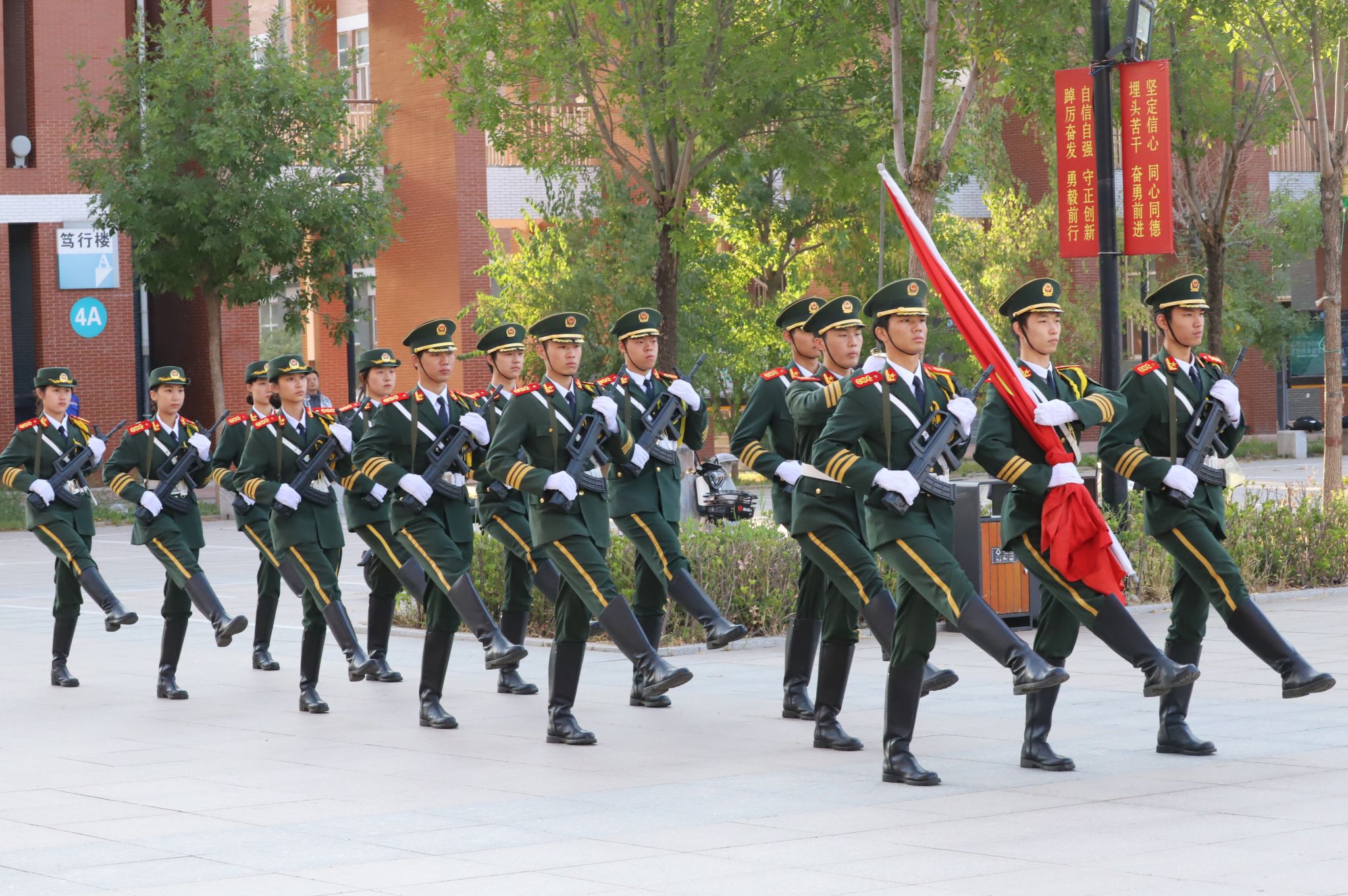 为庆祝新中国成立74周年,进一步加强爱国主义教育,激励全校师生厚植爱党爱国情怀、树立崇高理想、勇担时代使命,10月1日上午,我校组织开展庆祝新中国成立74周年升旗仪式。学院党委副书记、校长张效松,副校长崔立功及师生代表300余人参加了升旗活动。副校长崔立功主持升旗仪式。迎着朝阳,国旗护卫队迈着铿锵有力的步伐,护送鲜艳的五星红旗至升旗台。伴着雄壮的《义勇军进行曲》,五星红旗冉冉升起,全体师生齐唱国歌,向国旗行注目礼,...