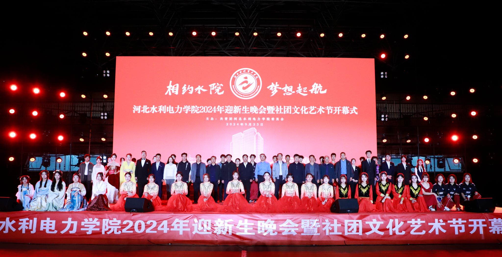 9月23日,我校举办以“相约水院,梦想启航”为主题的2024年迎新生晚会暨第九届社团文化艺术节开幕式。党委书记张效松、党委副书记崔立功、副校长杨凯出席晚会,各部门领导老师同两千余名2024级新生一起观看了晚会。晚会伊始,张校松上台致辞,他指出,今年是新中国成立75周年,作为新时代大学生,要牢记习近平总书记对当代青年的殷殷嘱托,充分发挥学生社团在第二课堂中的重要作用,广泛开展理论宣讲、专业竞赛、文体活动、志愿服务、...