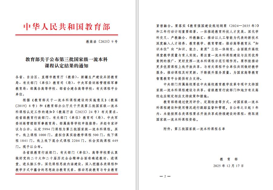 近日,教育部正式公布了《第三批国家级一流本科课程认定结果的通知》(教高函〔2025〕9号)。我校电力工程系路文梅教授团队负责的《发电厂变电站电气部分》课程,成功入选国家级线上线下混合式一流本科课程,实现我校国家级课程建设的重大突破。该课程为电气类专业核心课,以“培养专业素质过硬、行业所需的高素质应用型创新人才”为目标,既系统讲授发电厂、变电站电气一次部分原理与知识,又深度融合工程实践与工匠精神培养,着力提升学生综合素养。...