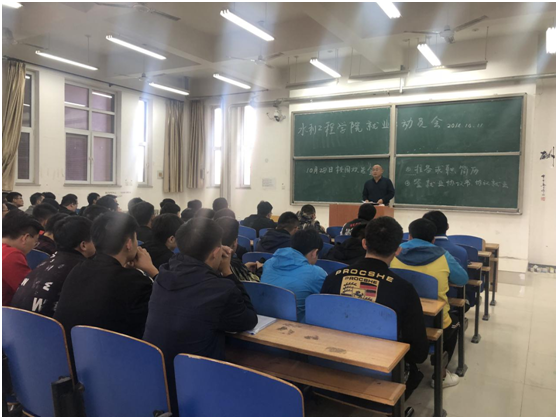 10月11日下午,水利工程学院于4C104教室召开了2019届就业动员大会,会议由水利工程学院党总支副书记陈元才老师担任主讲人,全体毕业班辅导员和毕业班学生参加了本次动员大会。 陈元才副书记从中国经济走势对就业形势...