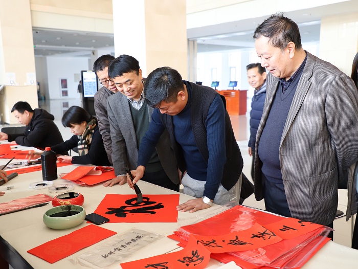 庚子逢盛世,翰墨再飘香。1月9日,在新春佳节即将到来之际,我校党委宣传部、校工会、校团委在弘文守正楼二楼大厅联合举办“传统文化进万家”活动,特邀我国著名书法家祝金廷团队及我校爱好书法的教师现场挥毫泼墨,...