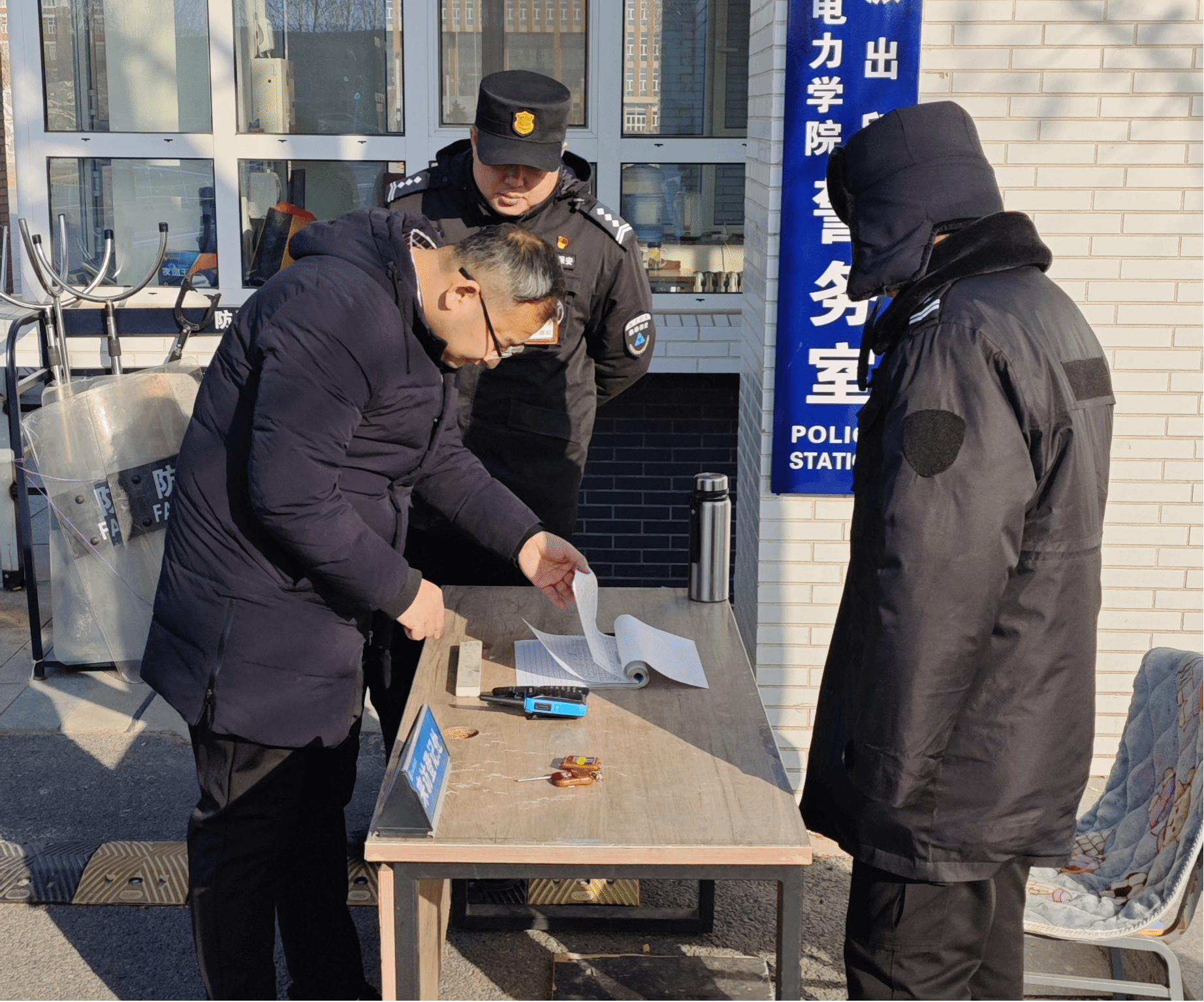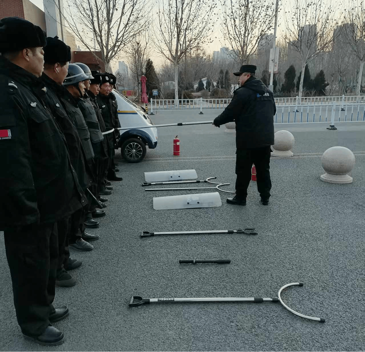 为有效遏制校园安全事件发生,提高保安员面对突发安全事件的应急处理能力,确保师生人身和校园财产安全。1月13日上午,安全工作处组织保安队先后开展反恐防暴应急演练及灭火演练活动。保安队长组织全体安保人员开展反恐防暴应急演练及灭火演练培训,对防暴盾、防暴钢叉等防暴器具和灭火器的使用进行了集体培训。一名保安员扮演身份不明人员,意图闯进学校,安保人员操作防暴盾、防暴钢叉等防暴器具设法牵制并成功将其制服。最后,全体保安人员在南门集合,...