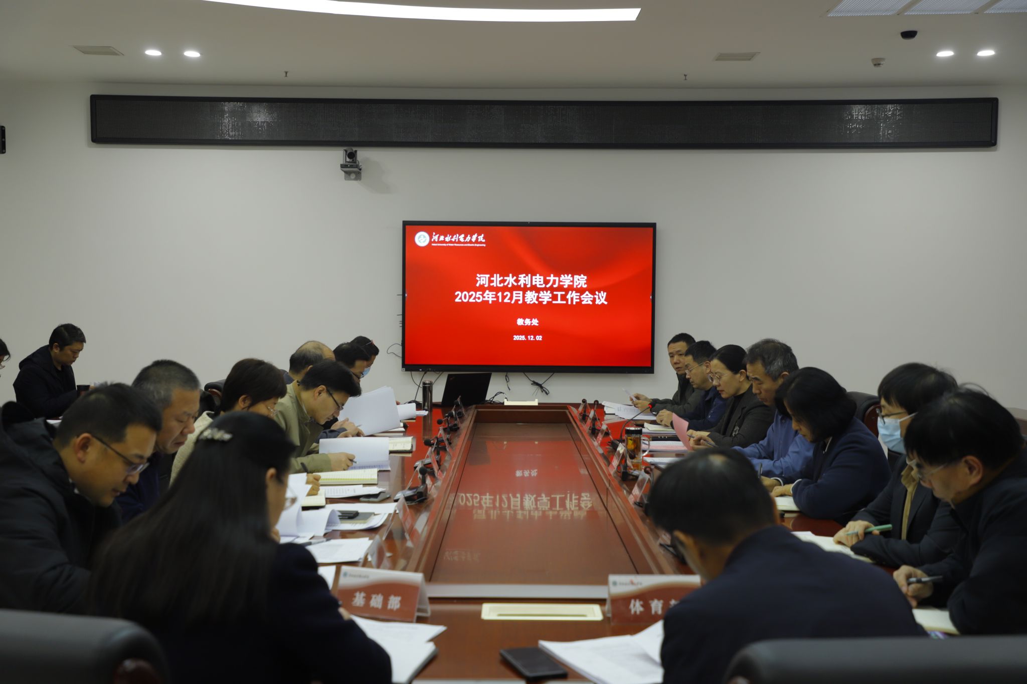 12月2日,我校在弘文守正楼九楼第三会议室召开12月份教学工作例会,总结2025年教学工作,谋划2026年教学重点工作,集体学习《审核评估指标体系》《河北省加快推进教育数字化实施方案(2025-2027)》。副校长董志良出席会议并讲话,会议由教务处处长贾冬青主持。会上,董志良对教学工作提出五点要求:一是锚定年度工作目标,各教学单位要系统复盘2025年教学工作成效,全面梳理经验做法与短板不足,科学谋划2026年重点任务与特色亮点工作,...