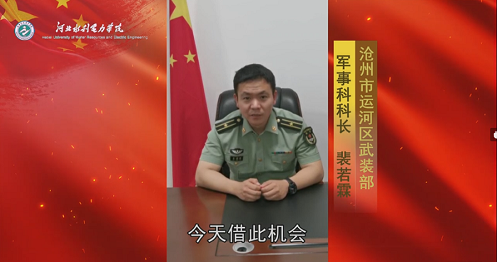 我校退役士兵代表陈泽伟结合自身入伍经历,与同学们分享了在部队中的感受与收获,向同学们发出了参军入伍的号召。