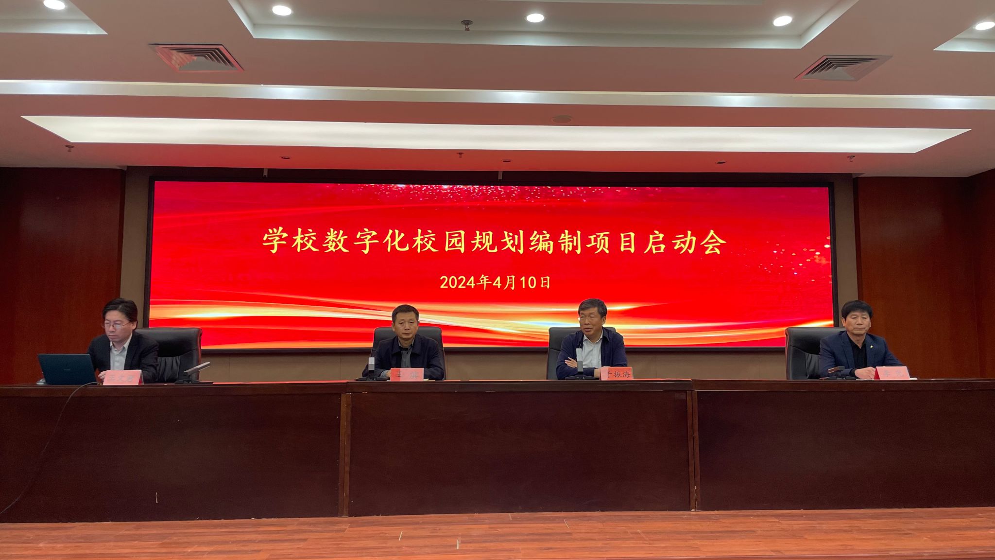 4月10日下午,我校在图书馆报告厅成功召开了学校数字化校园规划编制项目启动会。此次启动会旨在明确我校数字化校园建设的目标、任务和实施路径,为我校未来五年的数字化校园建设提供全面指导和有力保障。党委副书记、校长王滨,副校长于振海,北京航天世纪规划设计院有限公司项目负责人王文君以及双方相关部门负责人参加本次启动会,会议由现代教育技术中心主任李光主持。
