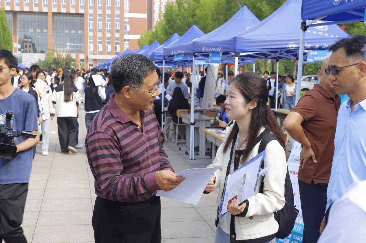 学校党委书记张效松,党委副书记、校长王滨,副校长杨凯现场与参会企业代表、毕业生访谈交流。在走访中国电建集团中国水电基础局、河北省建工集团有限公司等企业展位时,校领导对企业长期以来支持学校就业工作表示感谢,详细询问企业对于人才招聘的具体要求,欢迎企业提出更多评价建议,进一步推进产教融合建设。同时现场对各院系党政负责人、辅导员及专业教师提出明确要求,指出要以本次双选会为契机,主动对接企业需求,为毕业生提供“一对一”岗位推荐服务,积极引导毕业生树立扎根基层、服务行业一线的就业观,为区域产业发展输送更多高素质人才。