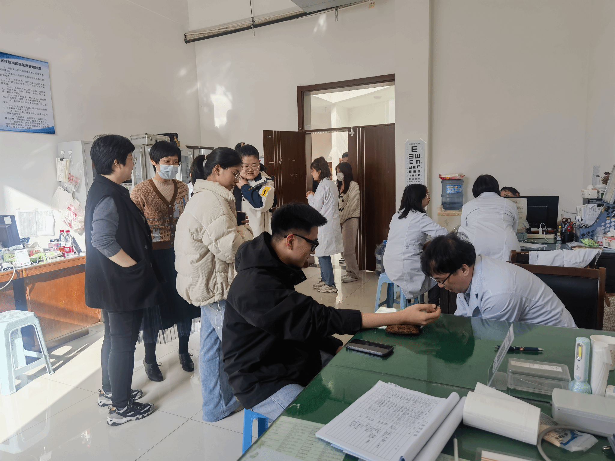活动中,中西医结合医院的专家团队现场为大家带来了专业的医疗服务。中医专家坐诊,提供中医问诊服务,解答关于中医养生的疑问;康复科专家针对颈椎腰椎问题,提供了手法正畸复位理疗服务,有效缓解了我校教师的身体疼痛问题;妇科专家也为女性教师提供了妇科问题的专业咨询。此外,活动现场还配备了彩超机,为大家进行超声检查,帮助大家了解自身身体状况。