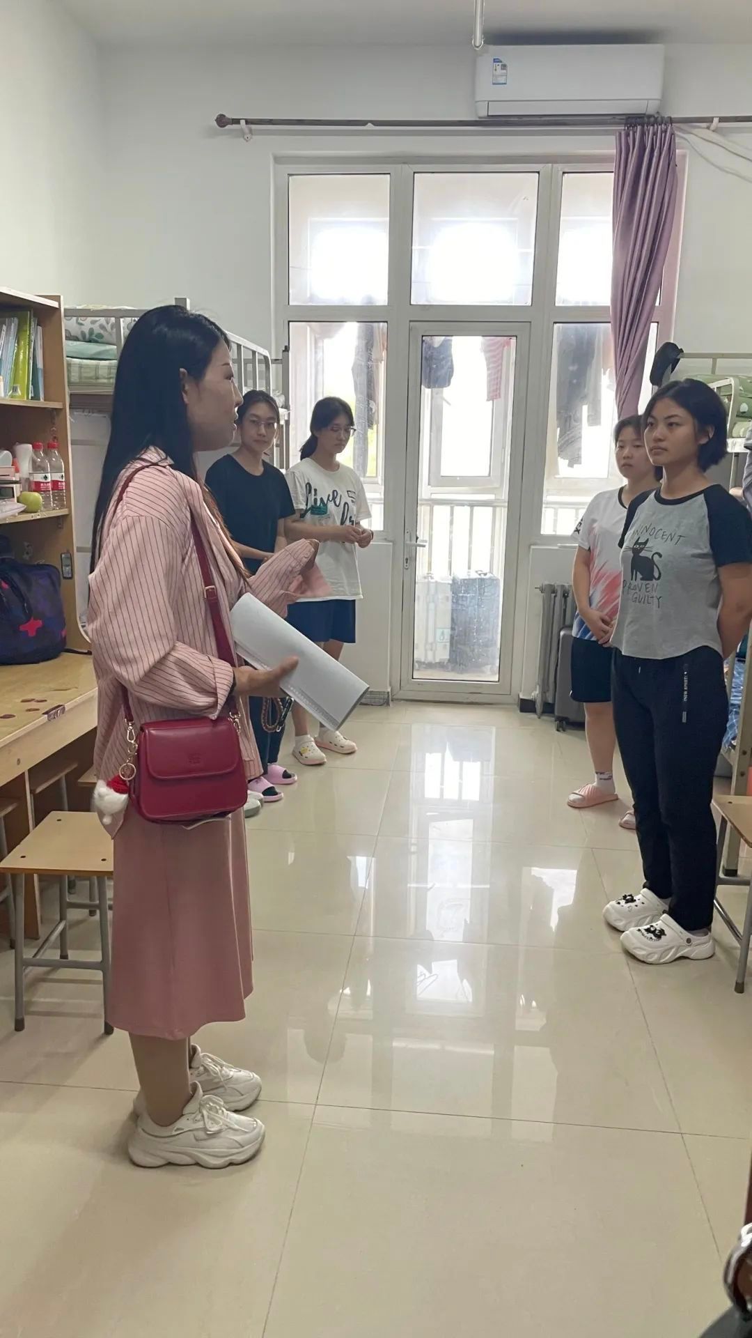 教育无他,唯爱与榜样。宿舍卫生关系到学生的身心健康,为使学生们有一个良好的学习生活环境,她经常一遍一遍地检查宿舍卫生情况,几天下来,她的双腿因为走得时间太长而肿了起来。但有的宿舍依旧物品杂乱,打扫不彻底,她二话不说撸起袖子便开始整理,每天一整理就到天黑,也不知道整理了多少宿舍,打扫了多少垃圾。从此,同学们都能积极主动整理宿舍,她用耐心细致的工作态度深深感染了学生。