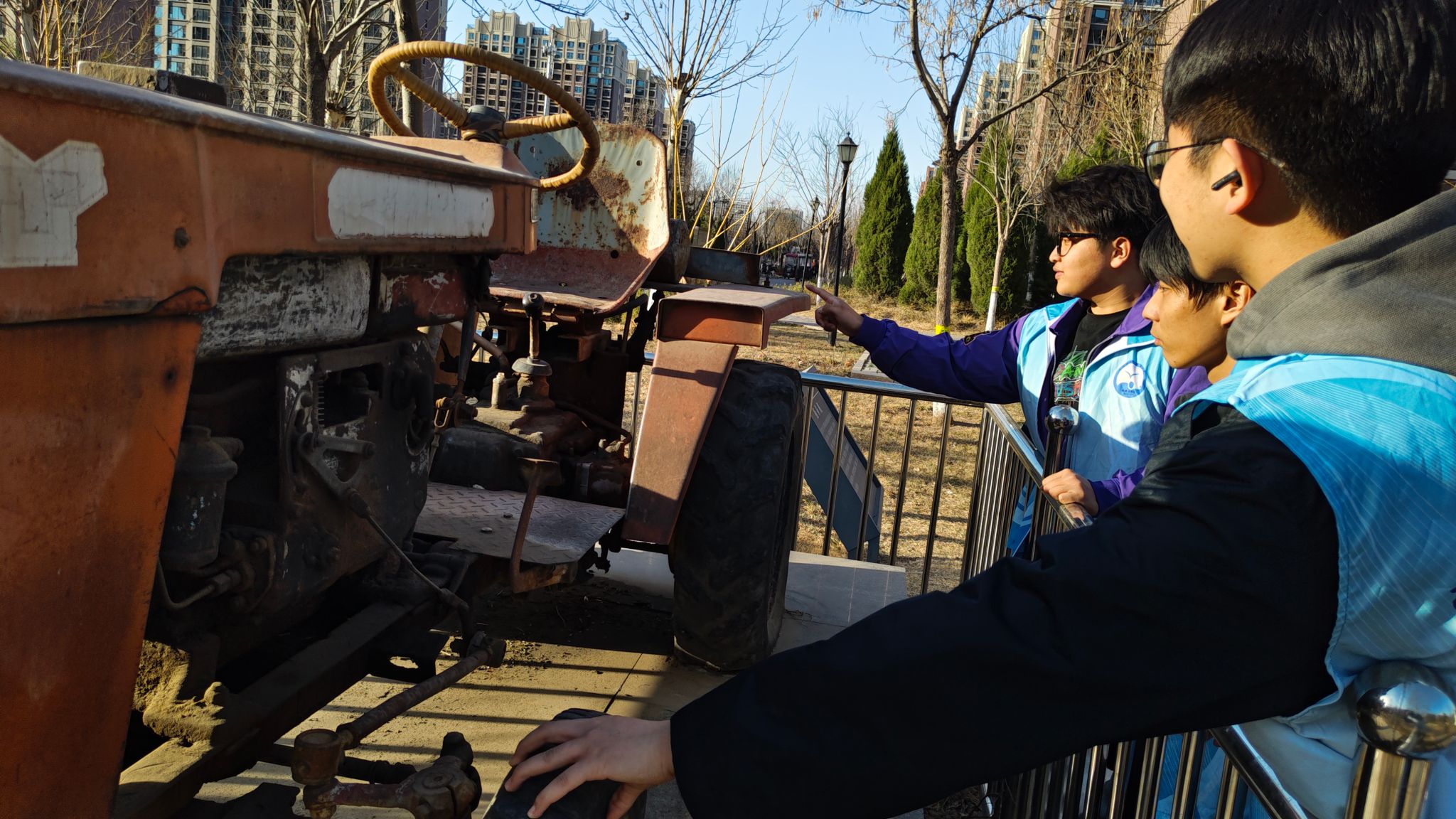 随后,志愿者们系统参观了劳动公园历史陈列区。通过观摩不同时期劳动工具展品、阅读劳模事迹图文资料,同学们深刻体悟到劳动精神与雷锋精神在价值追求、实践路径上的内在统一性。实践环节中,志愿者们携带清洁工具,对园区主干道、景观绿化带等公共空间展开系统化清洁维护,公园面貌焕然一新。
