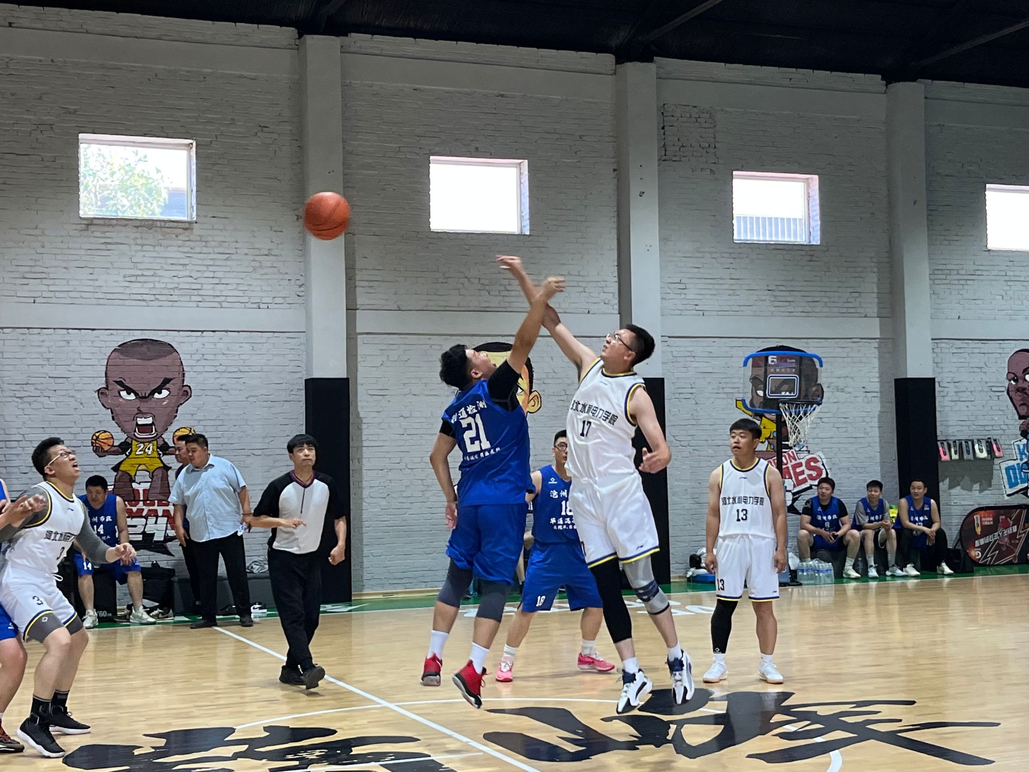 在校工会和沧州市市政工程股份有限公司工会的支持下,5月27日,我校篮球协会与沧州市市政工程股份有限公司篮球队联合举办了一场篮球友谊赛。我校教职工篮球协会于今年4月成立,目前有会员近40人,本次比赛是协会第一次正式与外单位的友谊赛,副校长杨凯、董志良,工会常务副主席伊淑霞、副主席崔建军,教职工篮球协会会长欧仁辉以及沧州市市政工程股份有限公司副总经理曹军想、工会主席李艳红、篮球队领队孙方宇亲临现场指导。