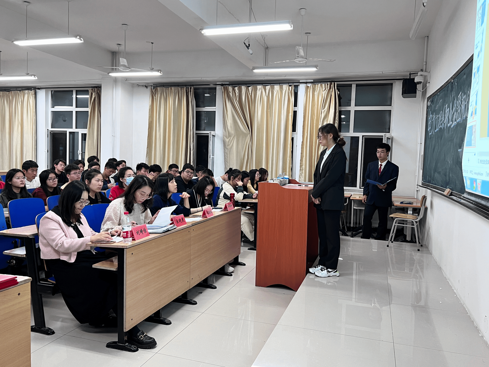同学们针对自己的兴趣和专业,制定了符合自身发展的职业生涯规划,通过演讲PPT的形式,从自我认知、职业环境分析、职业目标确定、评估与调整几个方面尽情讲解了自己的职业生涯规划,内容紧紧围绕主题,各有特色,比赛现场热情高涨、气氛热烈,充分展现了青年学子朝气蓬勃的精神风貌和锐意进取的精神面貌。